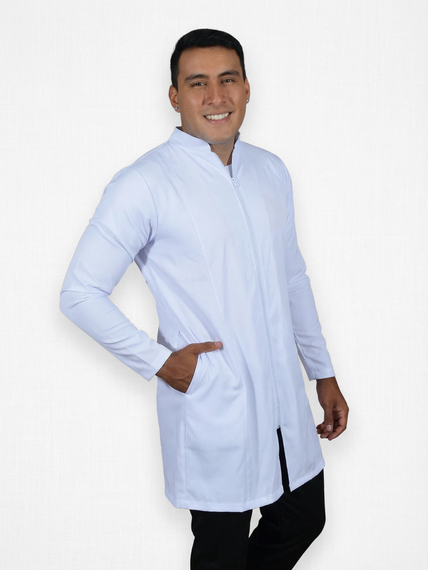 Redefine tu imagen profesional con un diseño vanguardista y funcional. La Bata Fresh combina la seguridad de un cierre completo con la elegancia de un corte moderno.